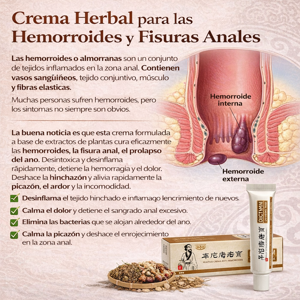 La buena noticia es que esta crema formulada a base de extractos de plantas cura eficazmente las hemorroides, la fisura anal, el prolapso del ano. Desintoxica y desinflama rápidamente, detiene la hemorragia y el dolor. Deshace la hinchazón y alivia rápidamente la picazón, el ardor y la incomodidad. Elimina los tejidos putrefactos y promueve el crecimiento de nuevos tejidos. Reduce los tejidos hemorroidales inflamados y regenera las fisuras anales rápidamente.