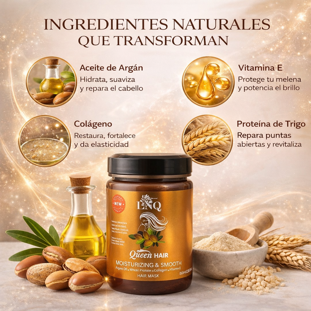 Todo gracias a su poderosa combinación de Aceite de Argán, Colágeno, Proteína de Trigo y Vitamina E, ingredientes que ayudan a hidratar, fortalecer y revitalizar la fibra capilar sin maltratarla.
