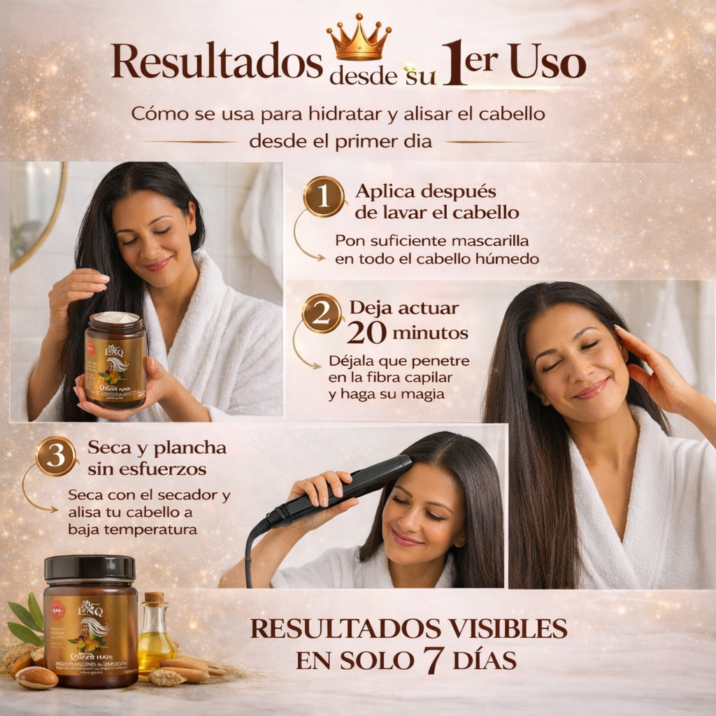 Una fórmula avanzada de reparación capilar que combina el efecto alisante que amas con una nutrición profunda real, diseñada para transformar tu melena desde la primera aplicación.
