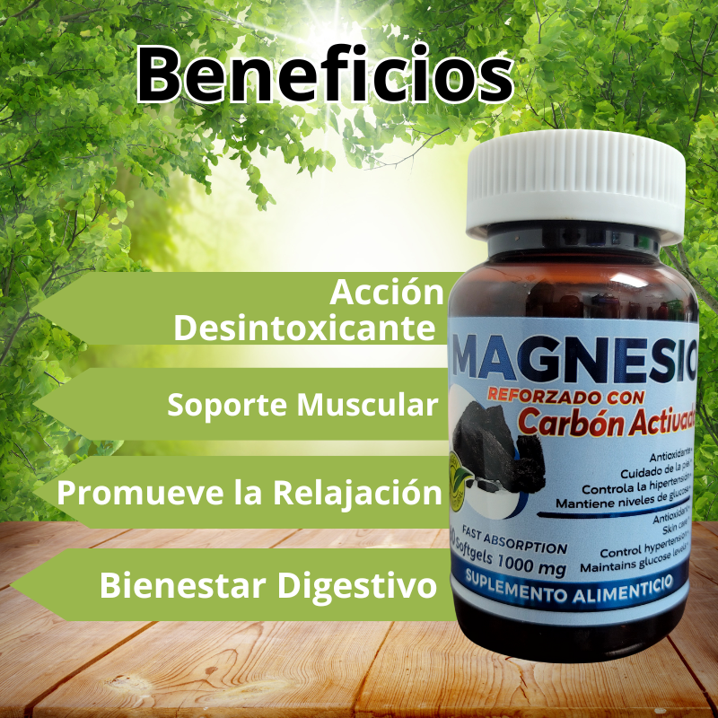 el Magnesio, un mineral esencial para más de 300 funciones del cuerpo humano, y el Carbón Activado, reconocido por su capacidad de adsorber toxinas y residuos del sistema digestivo.