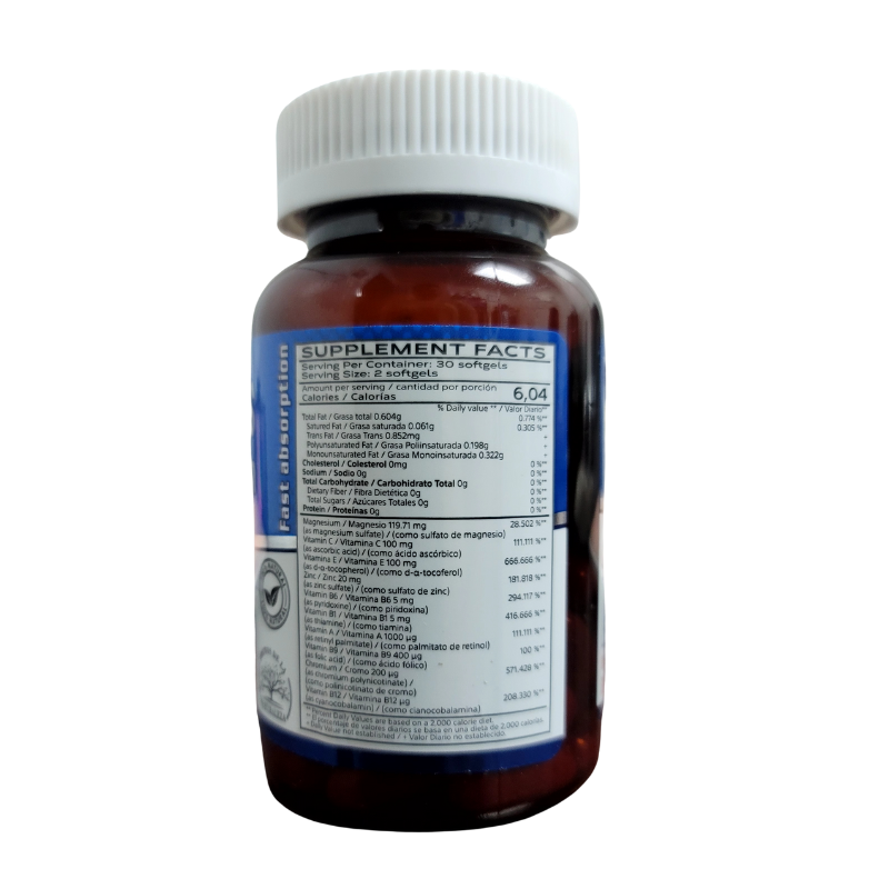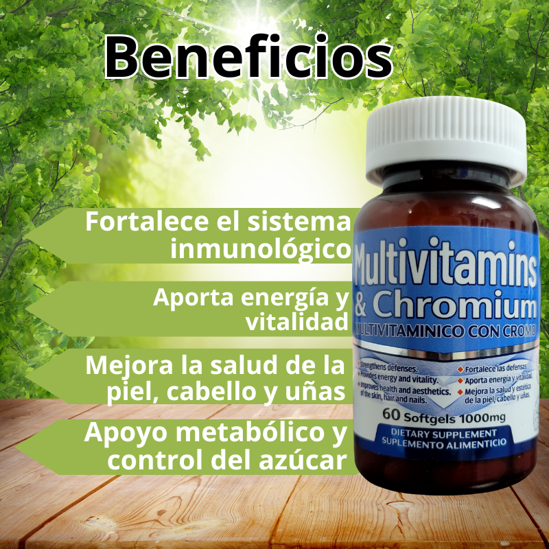 Descubre una fórmula completa que une el poder de las vitaminas y minerales esenciales con el Cromo, un elemento clave en el metabolismo energético y el control del azúcar en sangre.