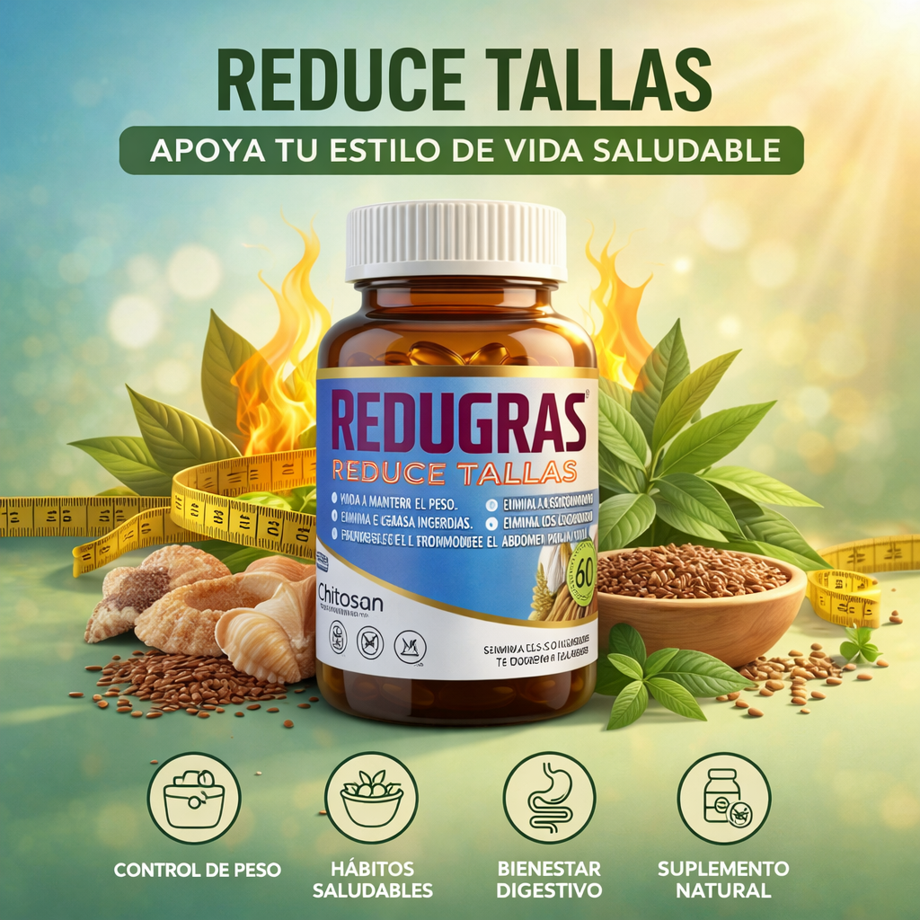 🔥🍃 Apoya tu estilo de vida saludable con Redugras Reduce Tallas, un suplemento diseñado para complementar tu rutina de bienestar, ayudando a mantener el equilibrio y apoyar tus objetivos diarios.