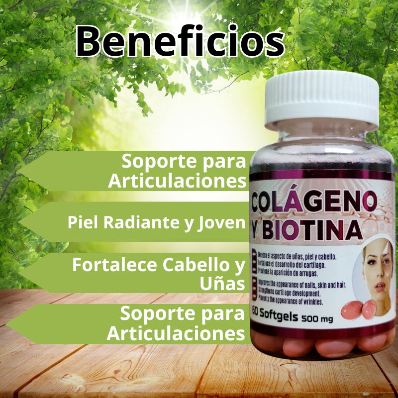 Nuestro Colágeno y Biotina en cápsulas blandas combina dos aliados esenciales para resaltar tu brillo natural: el colágeno hidrolizado, base estructural de la piel, cabello y uñas, junto con la biotina, conocida como la “vitamina de la belleza”.
