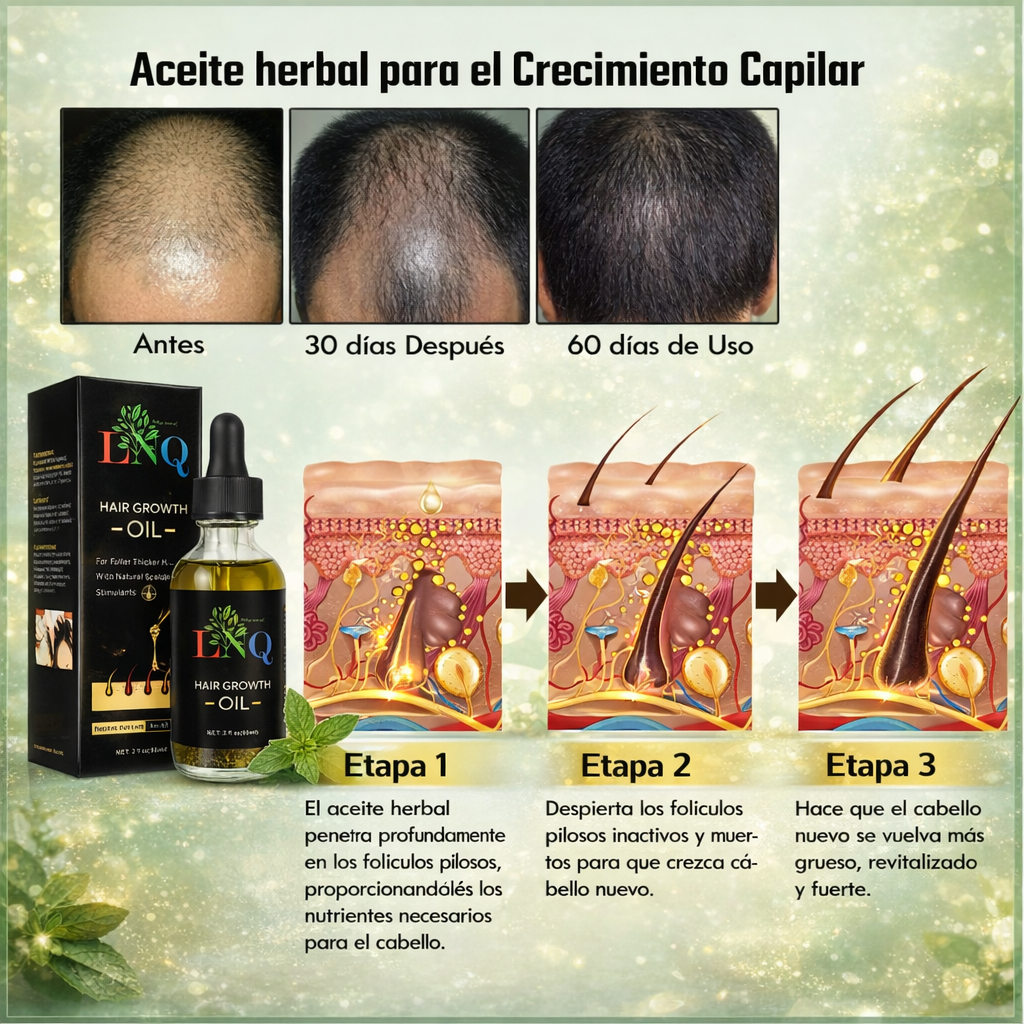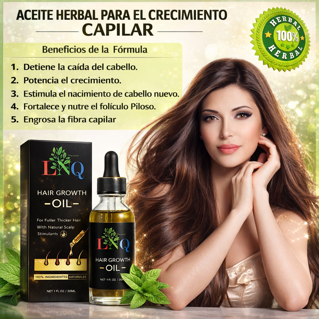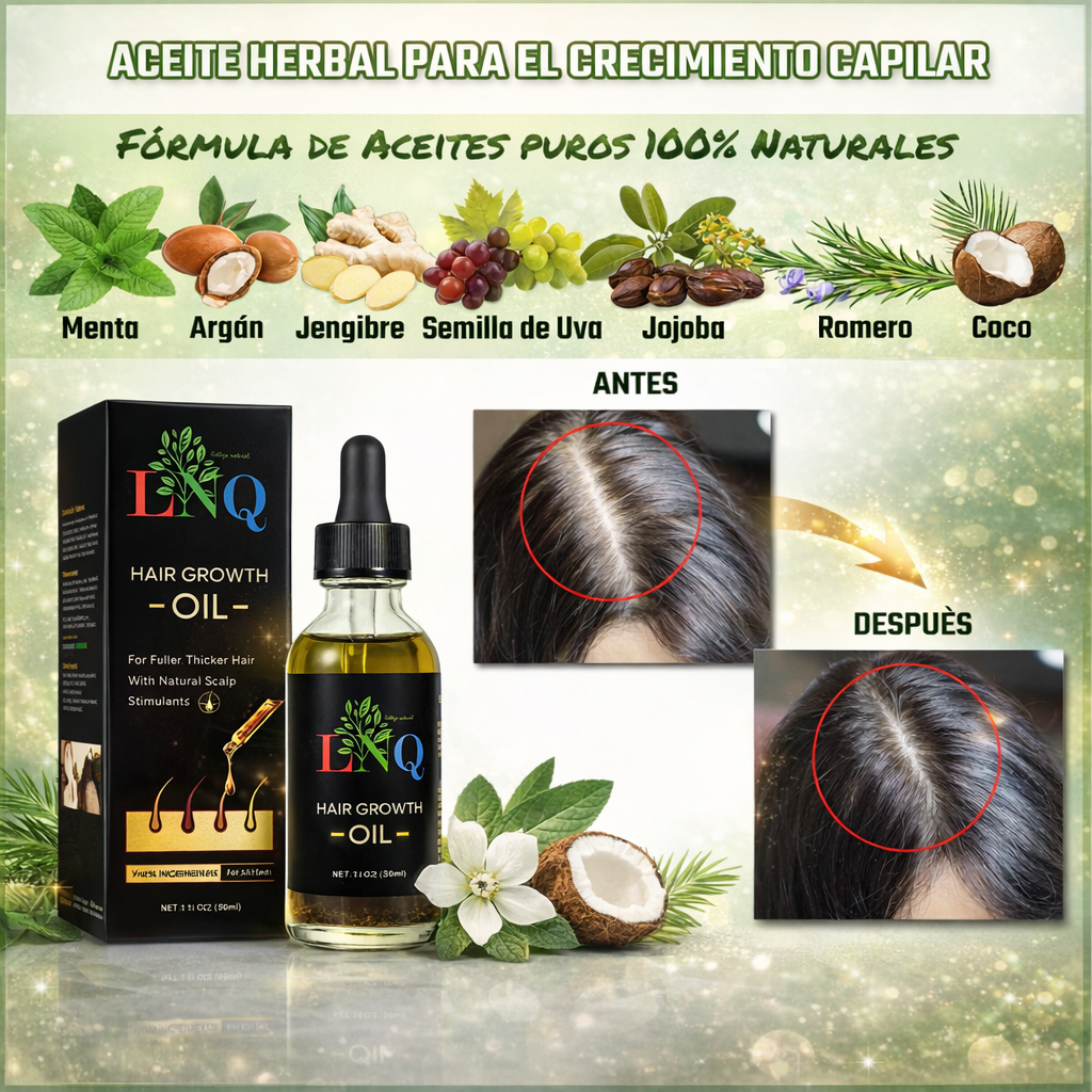 ¡Transforma tu cabello con el Aceite Herbal 🌿 de Crecimiento Potenciado! 🚀 Este elixir natural combina Biotina, Aceites de Ricino y Coco, con esencias de Romero, Jojoba, Menta y Jengibre para revitalizar cada hebra. 🌱
